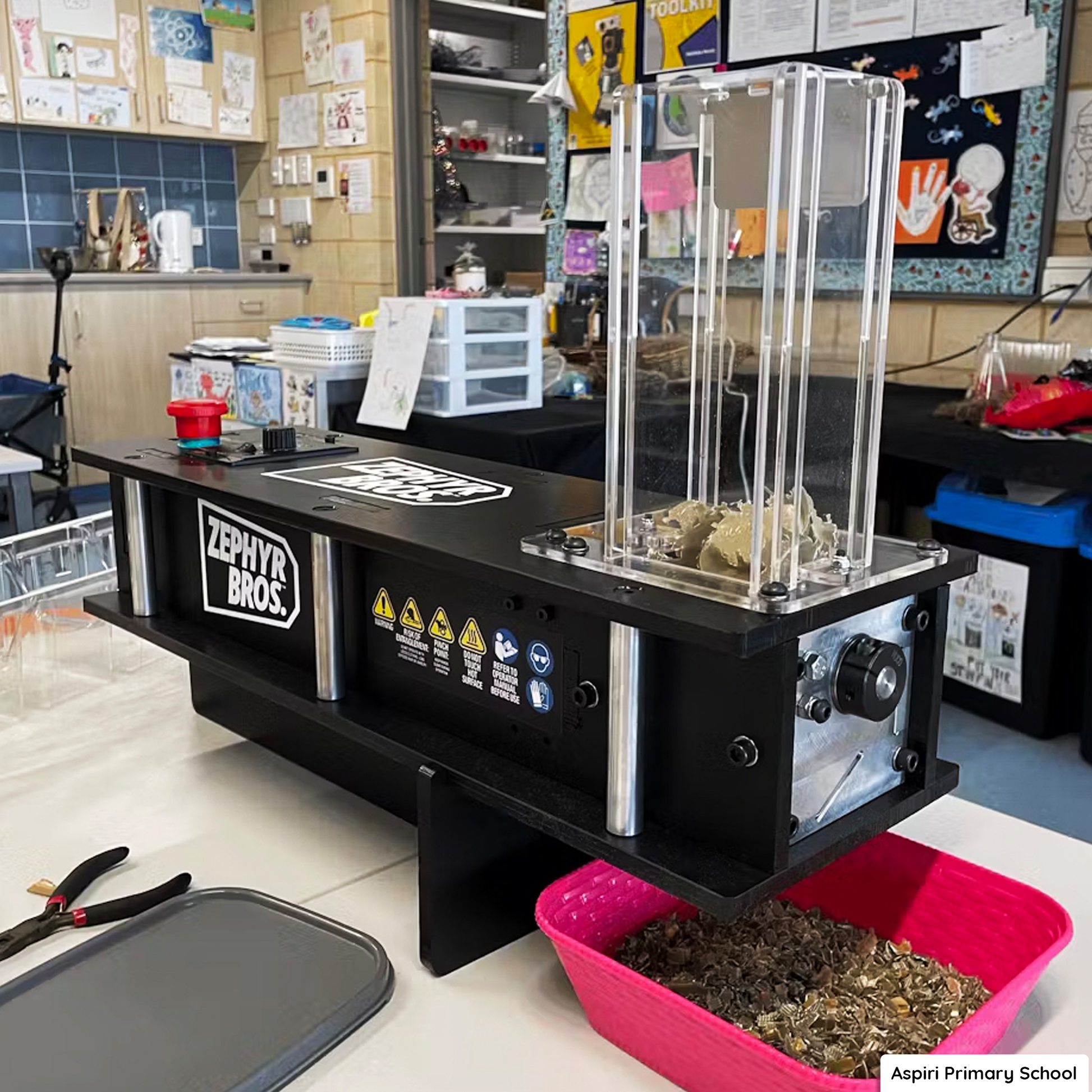 Our school has purchased the tabletop shredder and extruder to use with students in yr1-6 in our science lab. Students have learnt how to collect LDPE & HDPE lids for shredding, melting and moulding. Students have enjoyed making carabiners over the past year and half, and are now anxiously waiting for our mini pot and tumbling tower block to arrive. Pearz gave me all the information I needed to safely operate machines in a classroom environment that I have passed onto my students. PPM are quick at replying to queries and have included our logo onto our moulds. An amazing team doing amazing work!